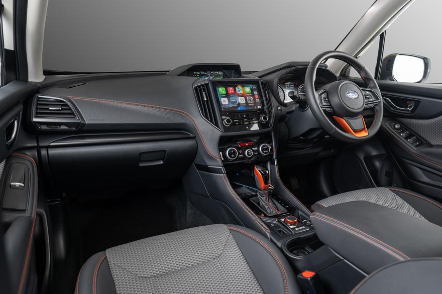 On the Subaru Forester Sport, the use of the orange and black theme has been tweaked, removing the orange splashes on the air vent surrounds yet maintaining the colour on the stitching and contrasting this with the exclusive Sport’s dark grey colour scheme and water repellent seats.