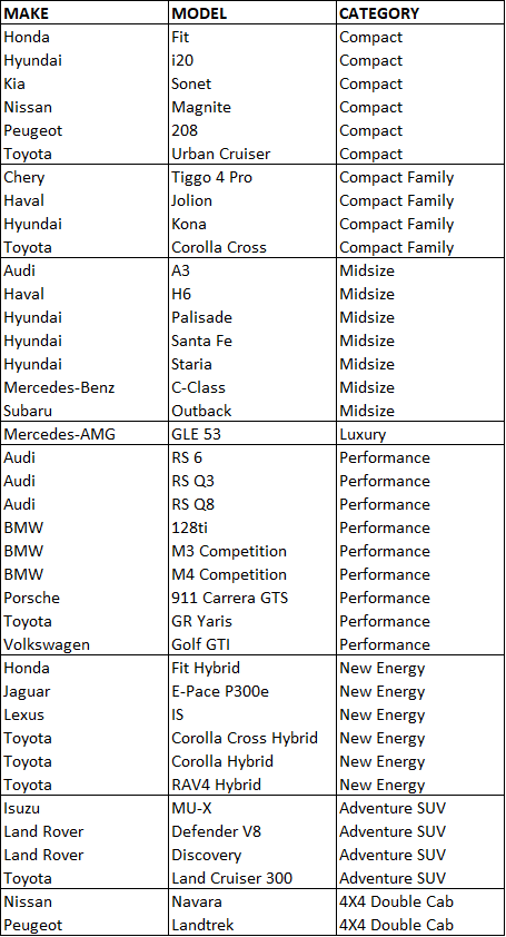 2022 SOUTH AFRICAN CAR OF THE YEAR SEMI-FINALISTS ANNOUNCED