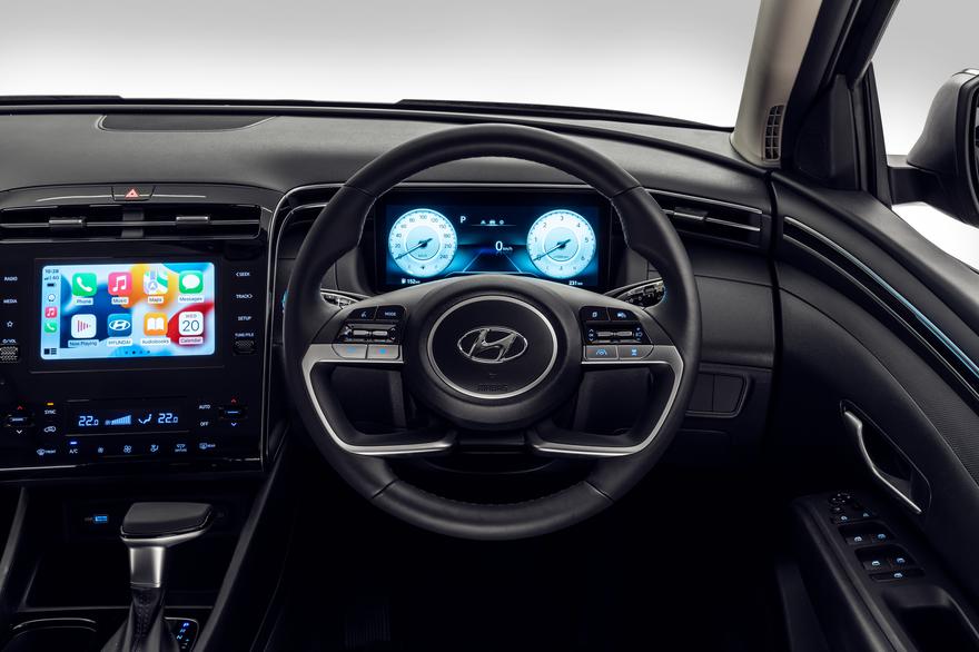 The seamless integration of segment-leading technology provides all-new Tucson customers with an advanced and fully customisable digital experience. The new Audiovisual Navigation (AVN) touch screen fills the centre of the vehicle. Hyundai’s designers dispensed with physical knobs and buttons, so all AVN, heat, ventilation and air conditioning functions are controlled via touch, making it the first Hyundai model to feature a full touchscreen console.