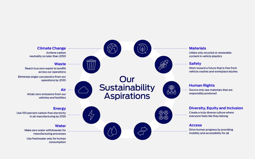 The 2022 Integrated Sustainability and Financial Report outlines how the Ford+ plan for growth and value creation builds on the company’s significant foundational strengths to scale electric vehicle production and harness connectivity and disruptive technology to make its products more accessible, more inclusive and safer to drive than ever before. Ford was one of the first U.S. automakers to align with the international community to limit global warming as part of the Paris Agreement, and the company’s goal is to build a business model that goes beyond net-zero and becomes a net-positive for both the environment and society.