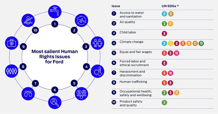 “I am also pleased to say that this year, Ford will publish a human rights report, another first for the U.S. auto industry. It will examine how our materials are sourced, where our products are manufactured and how our labor standards measure up. I am proud of the progress we have made over the last two decades and look forward to our continued accomplishments,” he added.
