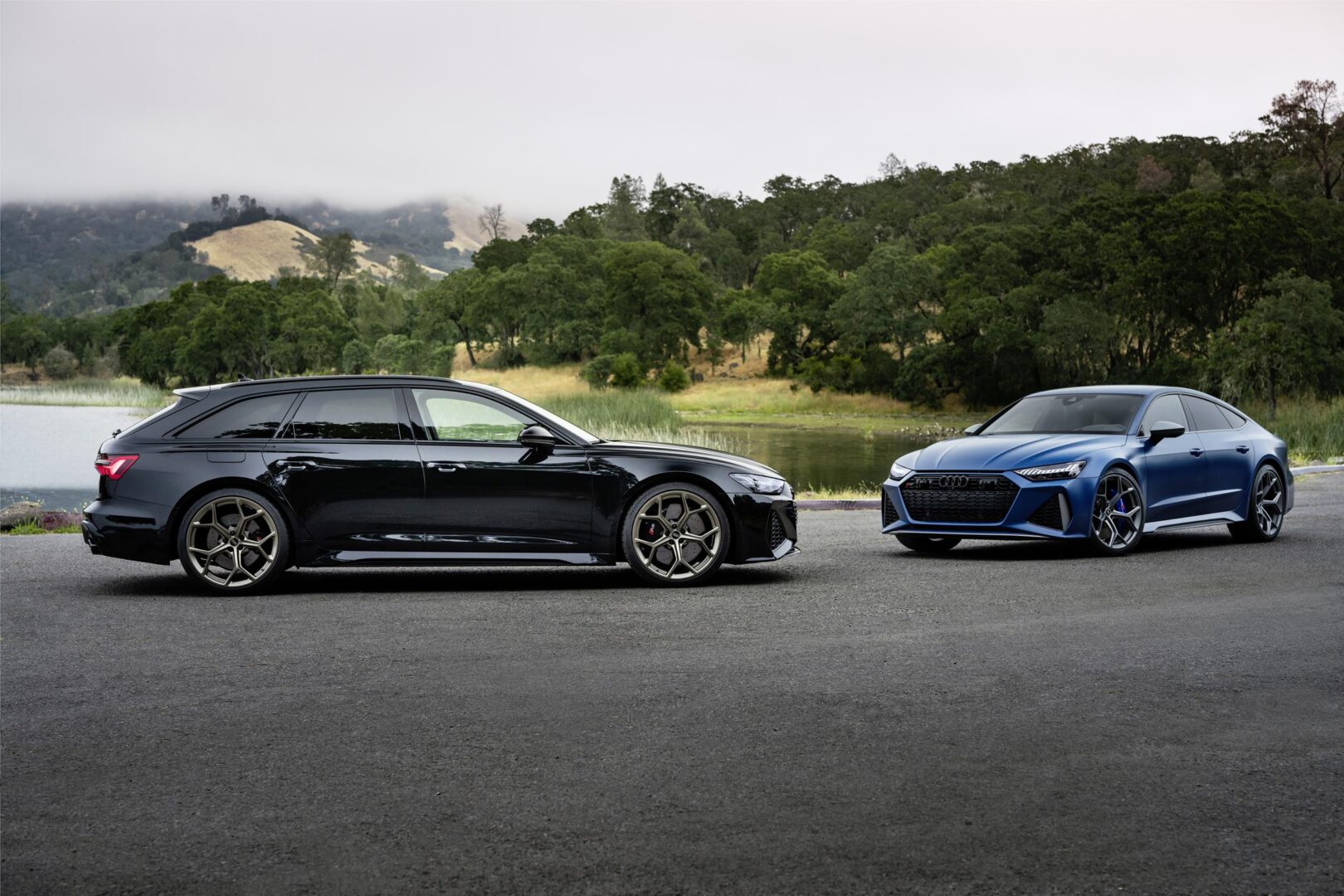 The new RS 6 Avant performance and RS 7 Sportback performance are available in a total of 16 exterior colours and, for the first time, metallic and matte Ascari Blue and matte Dew Silver are included. The performance models stand out with standard RS exterior components in matte grey, including the exterior mirrors, the front spoiler, the front side flaps, the side sill inserts, the roof rails, and the trim on the side windows and rear diffuser. A matte carbon/black styling package is also an option, in which the roof rails and trim on the side windows are black. The Audi rings and model name is available in the customer’s choice of chrome or black.