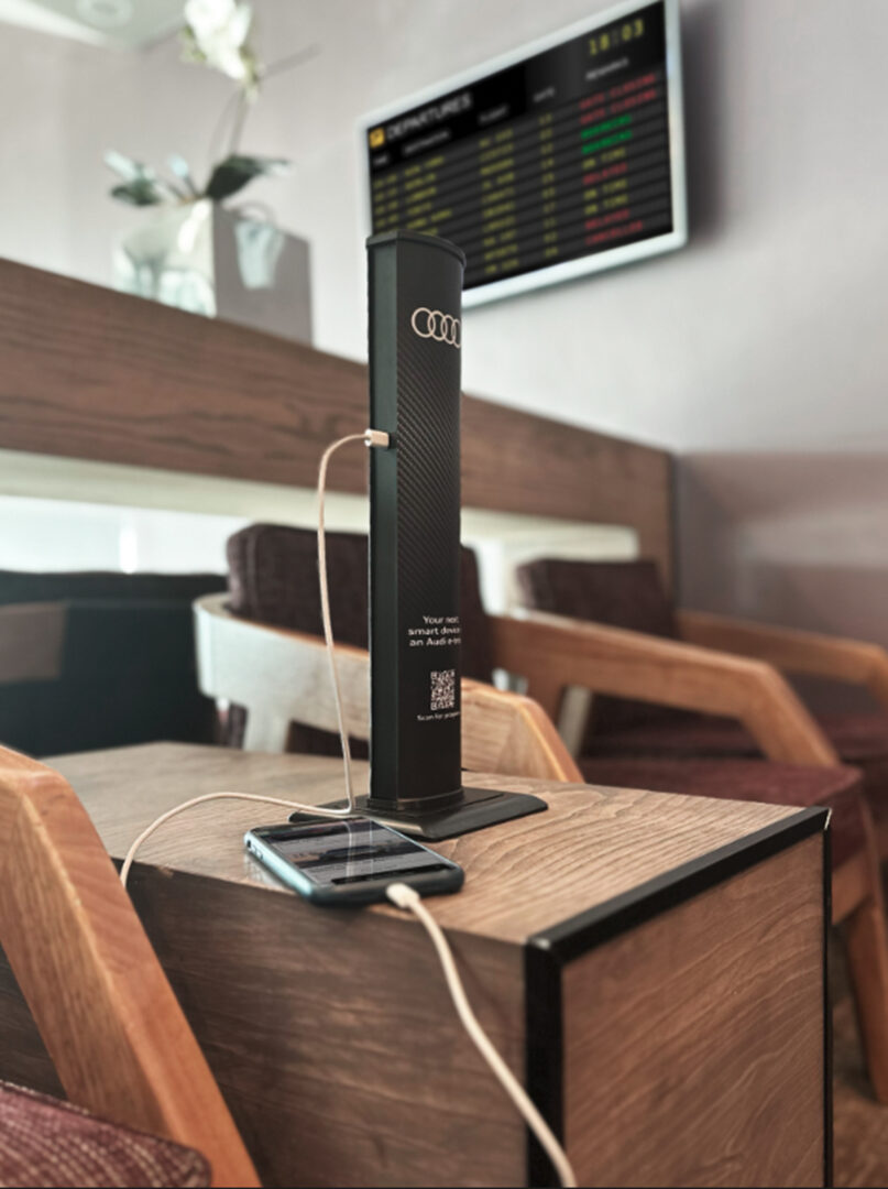 Johannesburg – In its ongoing effort to fast-track the local adoption of electric mobility, Audi South Africa has launched a national awareness campaign aimed at educating the public about electric vehicle (EV) charging. As part of the campaign, Audi has replaced regular charging points with a mini version of the brand’s electric vehicle chargers in Bidvest Premier Lounges at Cape Town and OR Tambo International Airports’ domestic departure terminals.
