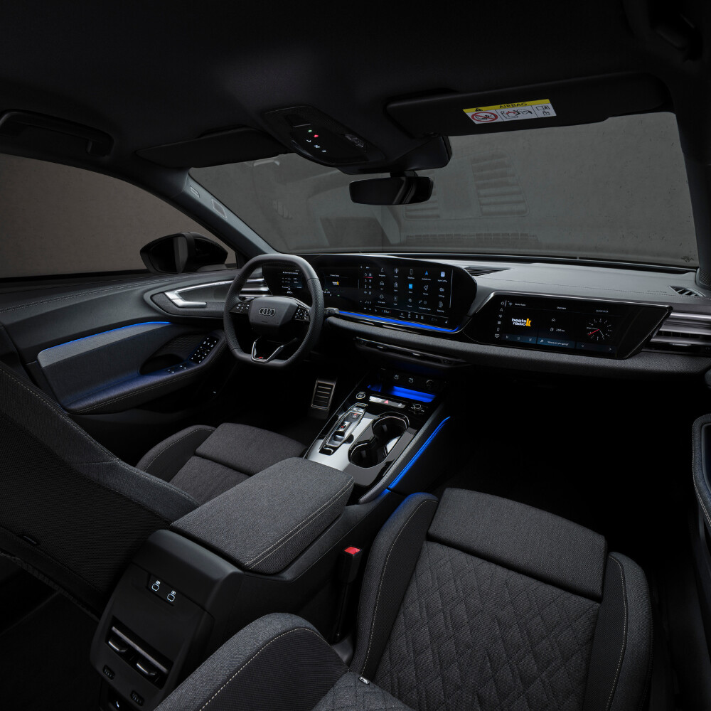 Audi’s leadership in lighting continues with available Matrix LED headlights, providing adaptive illumination and dynamic indicators. On Tech Pro models, the second-generation digital OLED rear lights offer up to eight selectable light signatures and include proximity detection and car-to-x communication to enhance roadside awareness and safety in critical moments.