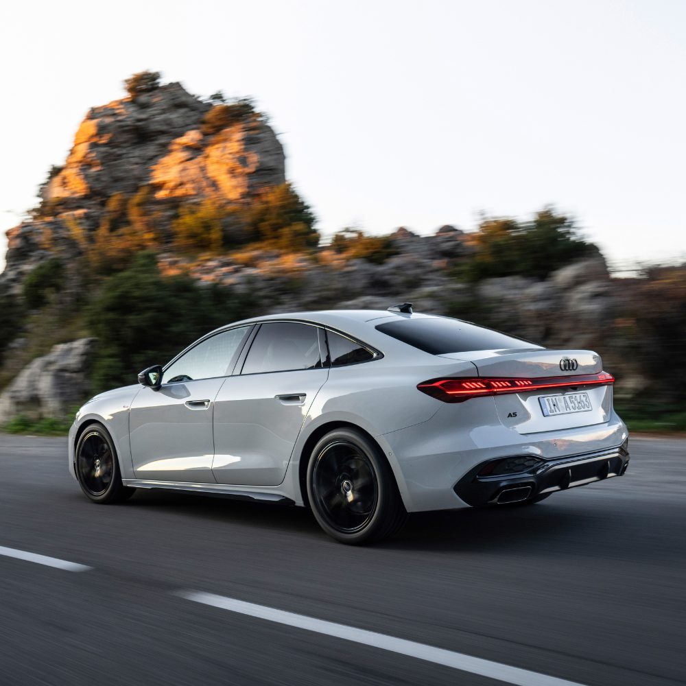 Strong blisters above the front and rear wheel arches reference the iconic Audi Urquattro and add to the car’s confident stance. At the rear, the A5 Sedan combines sculptural design with advanced lighting technology. A continuous, three-dimensionally offset light strip enhances visual width, while the clean lines of the bumper, dark diffuser and high-quality rectangular exhaust trims contribute to its refined yet sporty look.