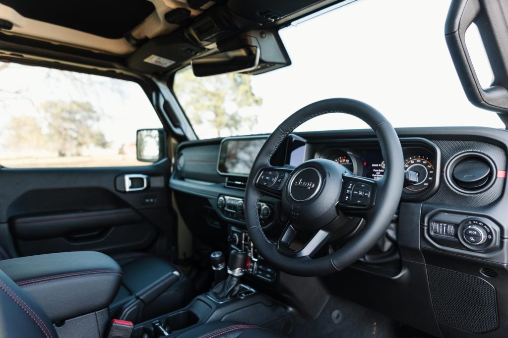 A new 12,3-inch infotainment centre houses the fifth-generation Uconnect system and sits prominently integrated into the new dashboard. Uconnect 5 enhances the user interface and system performance with quicker startup times and improved screen resolution. Directly below the touchscreen are functional features, such as climate and volume control knobs and media connectivity ports.