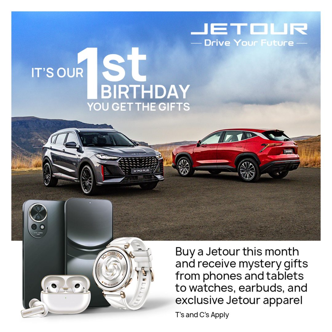 To celebrate their first birthday, Jetour is giving their new customers the opportunity to win prizes at any of their dealerships countrywide which could include tablets, air pods, smart watches, smart phones or Jetour apparel.