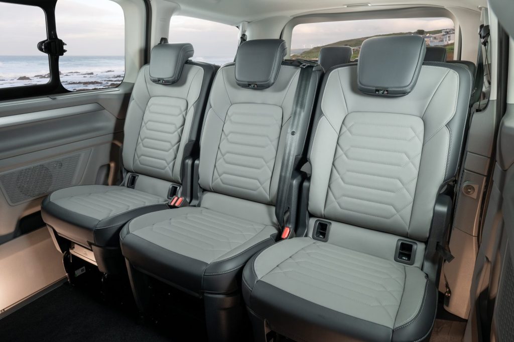 Silhouette: The side section shows the clean lines typical of a VW van. Similar to the T6.1, the upper contour of the headlights has been extended as a line into the side section, continuing through to the rear. Above this is the already mentioned Bulli line – a pronounced linear curvature. This divides the upper and lower areas of the body and is the designers’ way of paying homage to the very first generation of the Transporter.